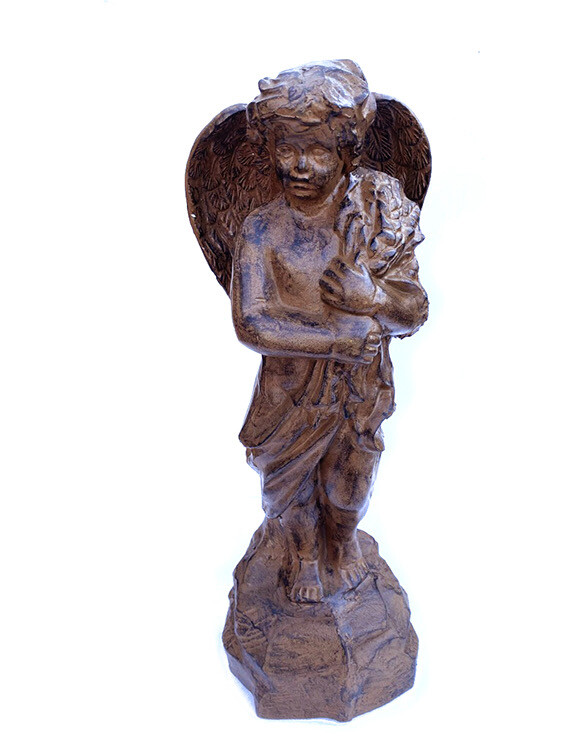Cherub Garden Statue - Cast Iron - Rust Finish. The Garden Cherub stands 22” High x 7.75 ” wide x 6.5". A Stunning addition to ones Home or Garden Decor.