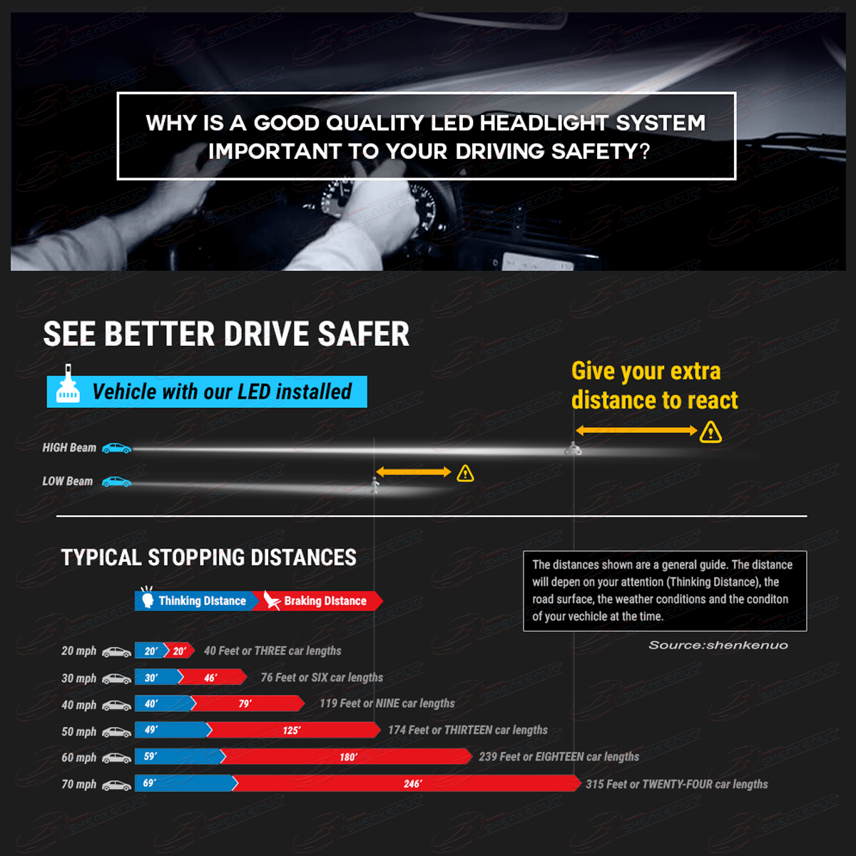 - The brightness is close to the xenon lamp, but the LED lights are illuminated without delay to enhance road safety.