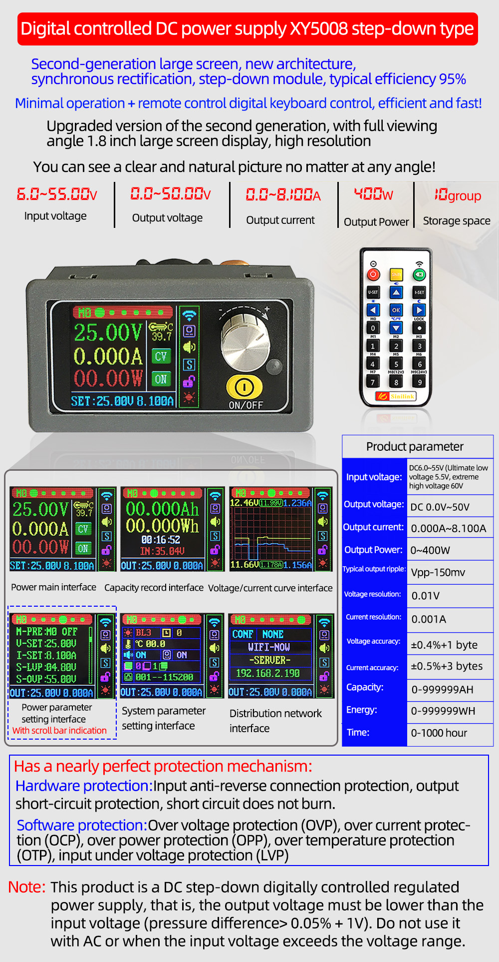 It also can used as a common voltage Buck-Boost power supply with over-voltage/over-current/over power/over temperature/under voltage protection.
