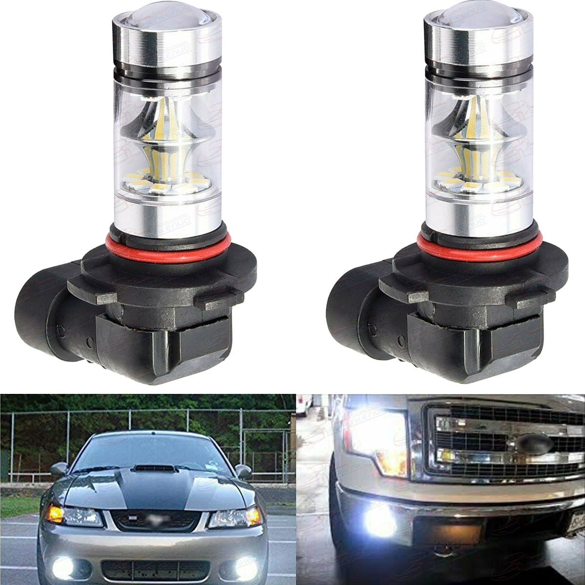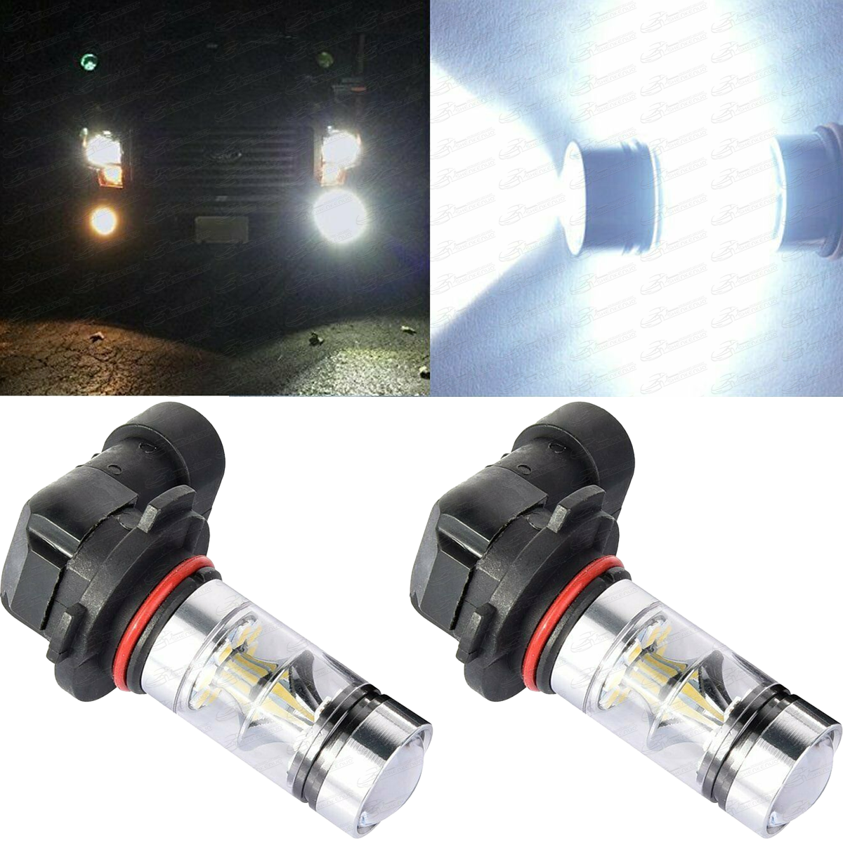 2X H10 6000K-6500K Xenon White LED Light Bulbs