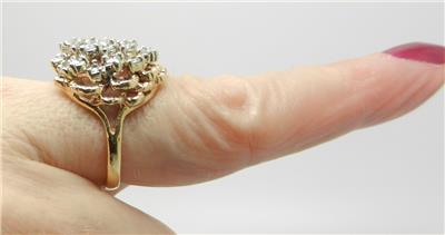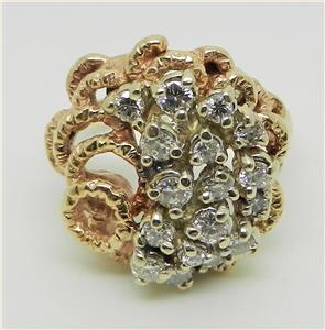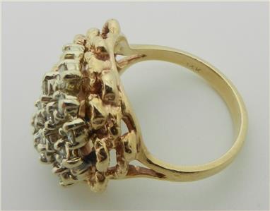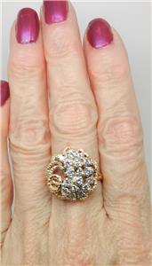 This beautiful ring is solid yellow gold tested and stamped 14K. The ring has a rope cluster design with 17 prong set genuine natural round diamonds that total approximately 1.09 carats, VS2-SI1 in clarity, H-I in color. The ring is very unique and a rare find. The ring was appraised by a GIA Master Graduate Gemologist and the detailed report will be included with the ring, the replacement value of this ring is $2,875.00 not including taxes. The ring can be resized by your local jeweler.