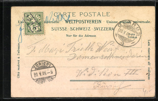 gelaufen 1905, Eckknick li. oben, Ecken bestoßen, sonst guter Zustand