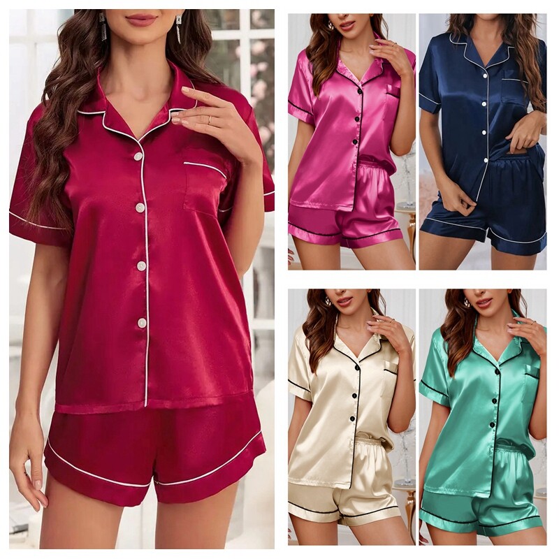 Womens Satin Pyjamas Ladies PJs Silk Short Sleeve Soft Sleepwear Nightwear Set