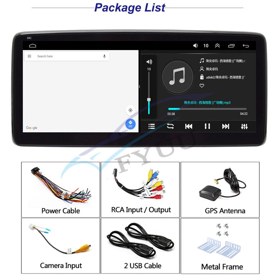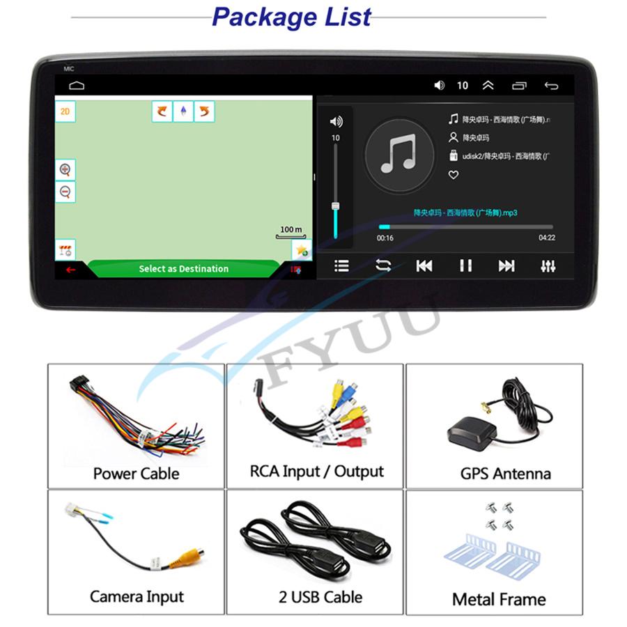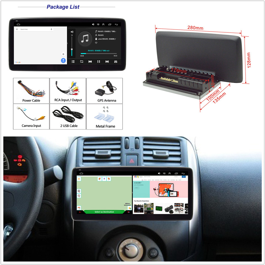 - Screen Size: 10 .25inch - Front panel Size: As picture show - CPU: Quad Core AC8227L A7 - ROM: 16GB - Setup: Auto Answer, Auto connect, Device name - Built-in Microphone: Yes, on the front panel -1 x Car Radio Stereo -1 x GPS Cable -2 x USB Cable -1 x RCA Cable -1 x Camera Input CableSpecifications