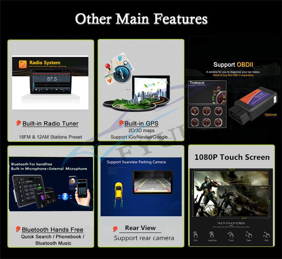 - Support Maps: IGO, Sygic, Google Map etc.