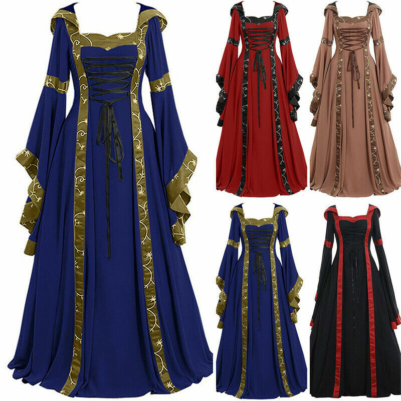 Women Medieval Renaissance Dress Costume Cosplay Halloween Victorian Gothic Gown