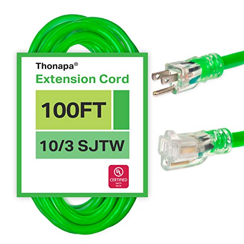 ALL PURPOSE EXTENSION CORD for Indoor and Outdoor use. Great for gardening, landscaping, or powering any household appliance. DURABLE DESIGN - Flexible vinyl covering protects cords against moisture, abrasion and sunlight. Slip resistant. 3 IN 1 OUTLET - Allows you to simultaneously use multiple tools or devices. LED LIGHTED PLUGS - An internal LED lights up to indicates when the power is on. UL LISTED - 10 GAUGE 3-wire grounded, 100 foot, 15 amp, 125 volt, 1875 watt, 5-15P/R