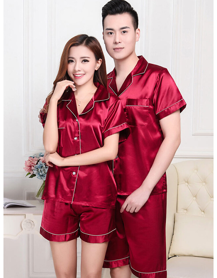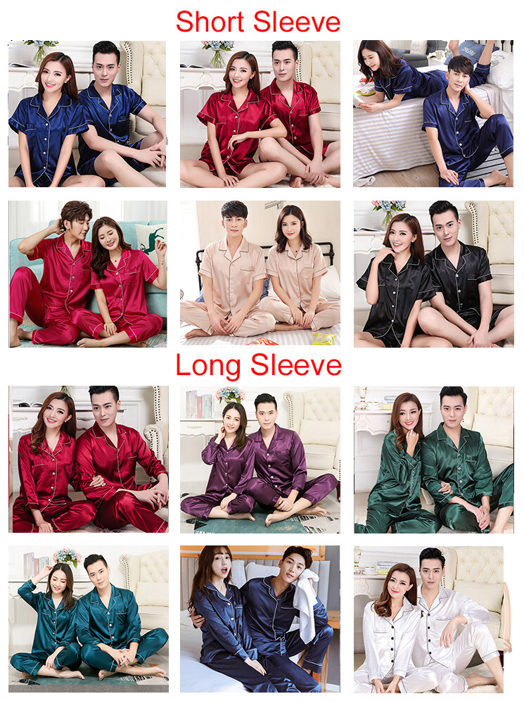 Mens Womens Silk Satin Pajamas Pyjamas Lovers Loungewear Sleepwear Set Nightgown