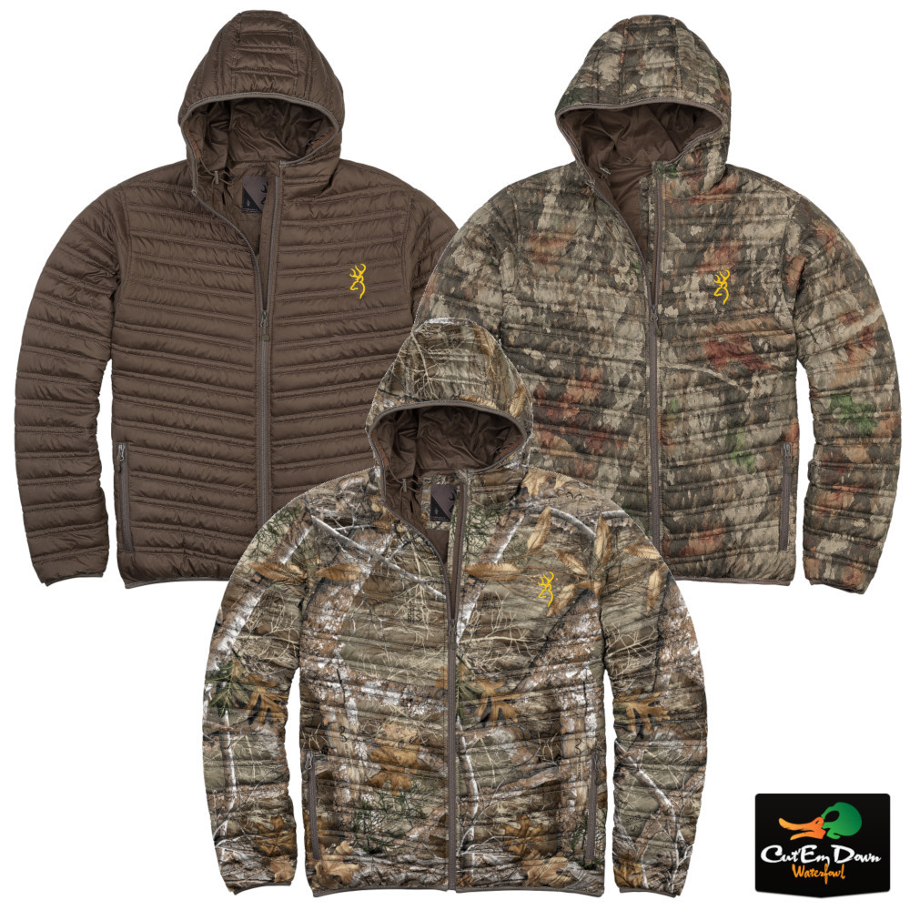 | Cold weather comfort. Designed to be part of your clothing arsenal all year long, the ultralight Packable Puffer Jacket sets its sights on maximum warmth and compressibility. The combination of a tough polyester micro-ripstop fabric and PrimaLoft® Silver blended down insulation make for a jacket that is highly compactible. In warmer conditions, the Packable Puffer stows away virtually unnoticed in your pack until called upon to take away after dark chill or an unplanned breeze in the high country. In cold weather it becomes a great mid layer or even a shell if the conditions are dry. You can buy with confidence as we are an Authorized Browning dealer. Feel free to contact us with any questions you may have. ![]() |