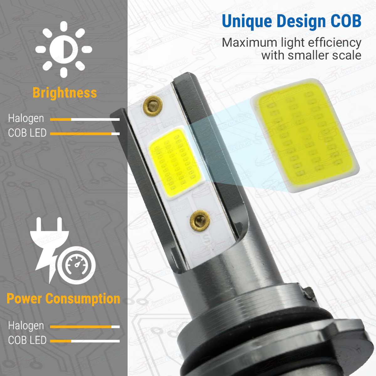 - The led bulb with the all-aviation aluminum body, hydraulic fan and built-in intelligent IC and temperature control system can perfectly solve the problem of light decay and dead lamp caused by the highest temperature of LED car light to ensures it will last longer.
