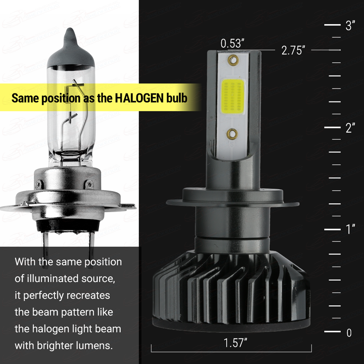 - The mounting collar of the bulb can be softly adjusted to fit different headlight housing with different angles. The light pattern could be easily adjusted and looks just like a halogen one but is brighter and clearer in an LED platform. The beam pattern is set correctly by default but it's free to adjust by rotating the back of the cooling fan. There are zero dark spots and the pattern is focused to near perfection.