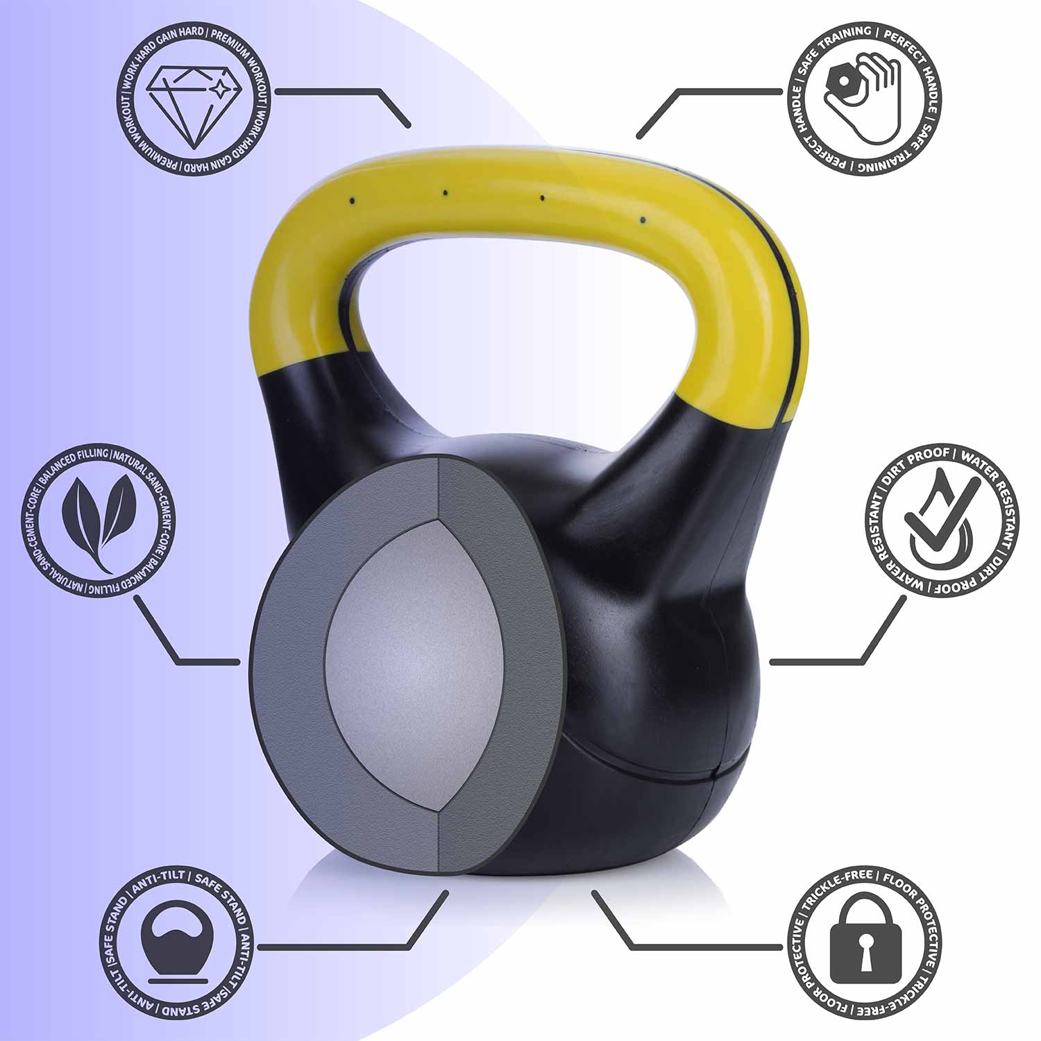 Unsere Body & Mind Schwunghanteln sind dem Profibereich nachempfunden: Der schwere Gewichtskern der Kugelhantel ist mit einem Kunststoffmanteln umzogen, der vor Verletzungen und gleichzeitig den Untergrund schützt. Die verschiedenen Gewichte sind farblich schön und praktisch voneinander getrennt, so dass Sie für die verschiedenen Übungen immer direkt zu den richtigen Kettle Bells greifen. Stählen Sie nun Ihren Körper und denken Sie immer daran: In einem gesunden Körper, steckt ein gesunder Geist!