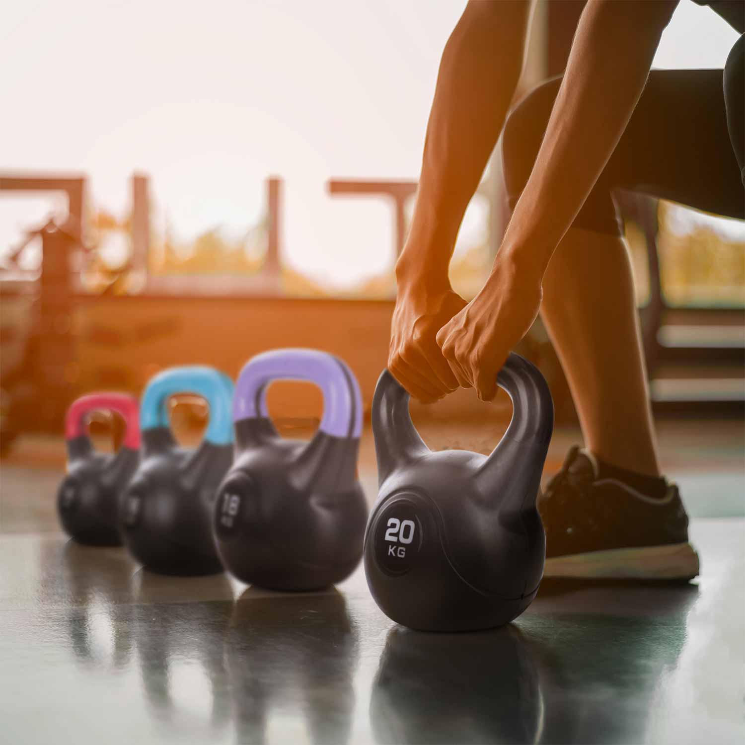 Kettlebell-Übungen erfordern den Einsatz mehrerer Gelenke, wodurch alle größeren Muskeln des Körpers beansprucht werden. Kettlebell-Verbundübungen verbrennen Kalorien schneller als Isolationsübungen, bei denen nur ein Muskel ganz isoliert beansprucht wird. Mit ihrem runden, kugelähnlichen Profil und dem integrierten Schlaufengriff dient die Kettlebell als Gewichtswiderstand und als Gegengewicht für eine Vielzahl von Übungen, für den oberen und unteren Körperbereich.