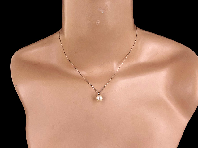 Vintage Maui Divers 14k White Gold Cultured South Sea White Pearl Pendant Necklace 15”