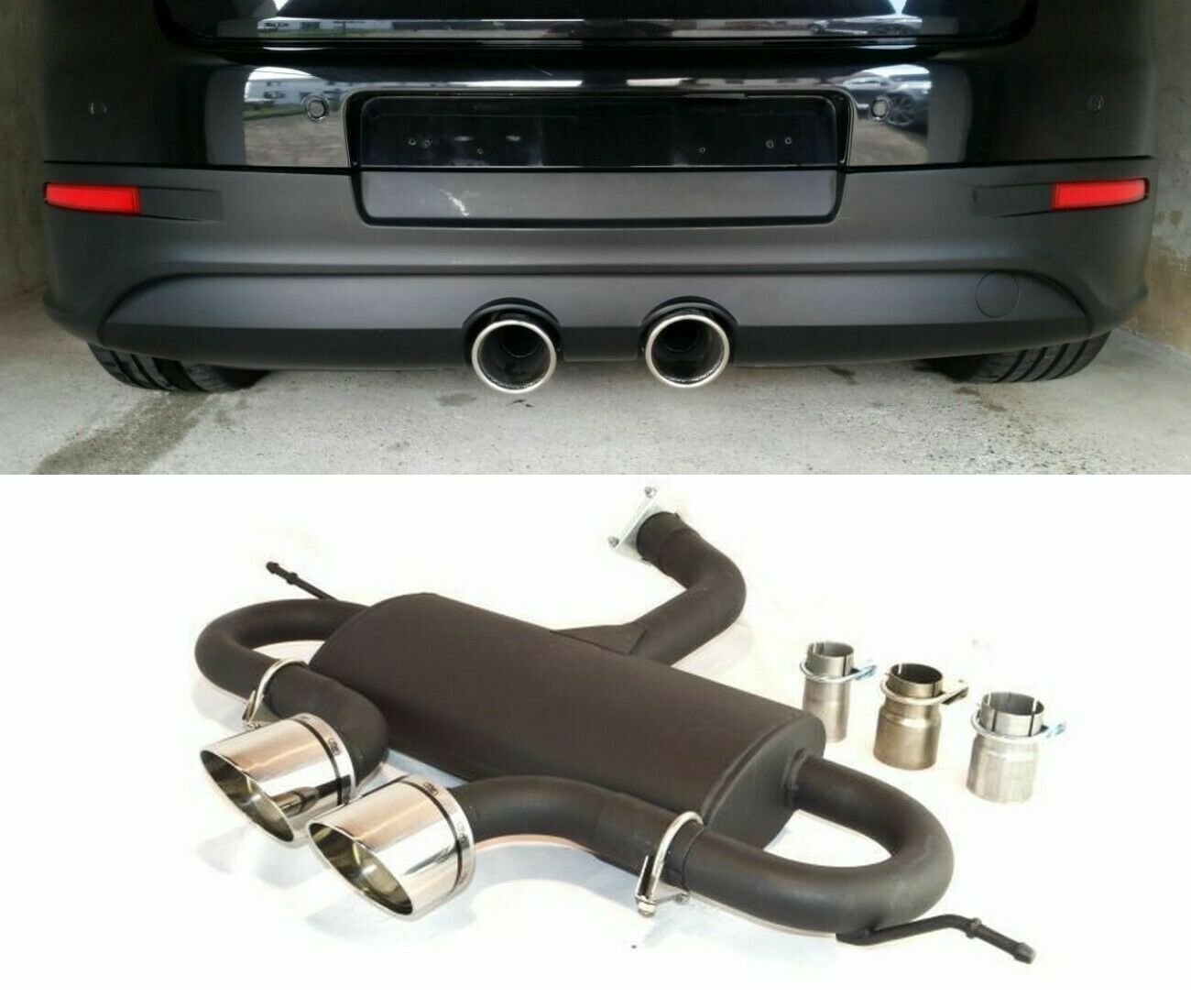 Escape deportivo dúplex con 2 salidas de escape de 100 mm con bordes afilados, apto para modelos Golf 5 de hasta 169 kW.
