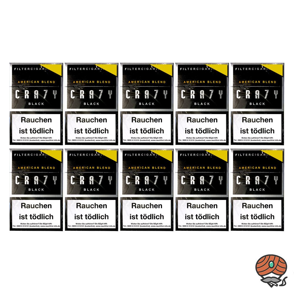 CRAZY BLACK Filterzigarillos werden mit einem Naturdeckblatt aus 100% Tabak hergestellt. Die Einlage besteht aus einer aromatischen American Blend Tabakmischung.
