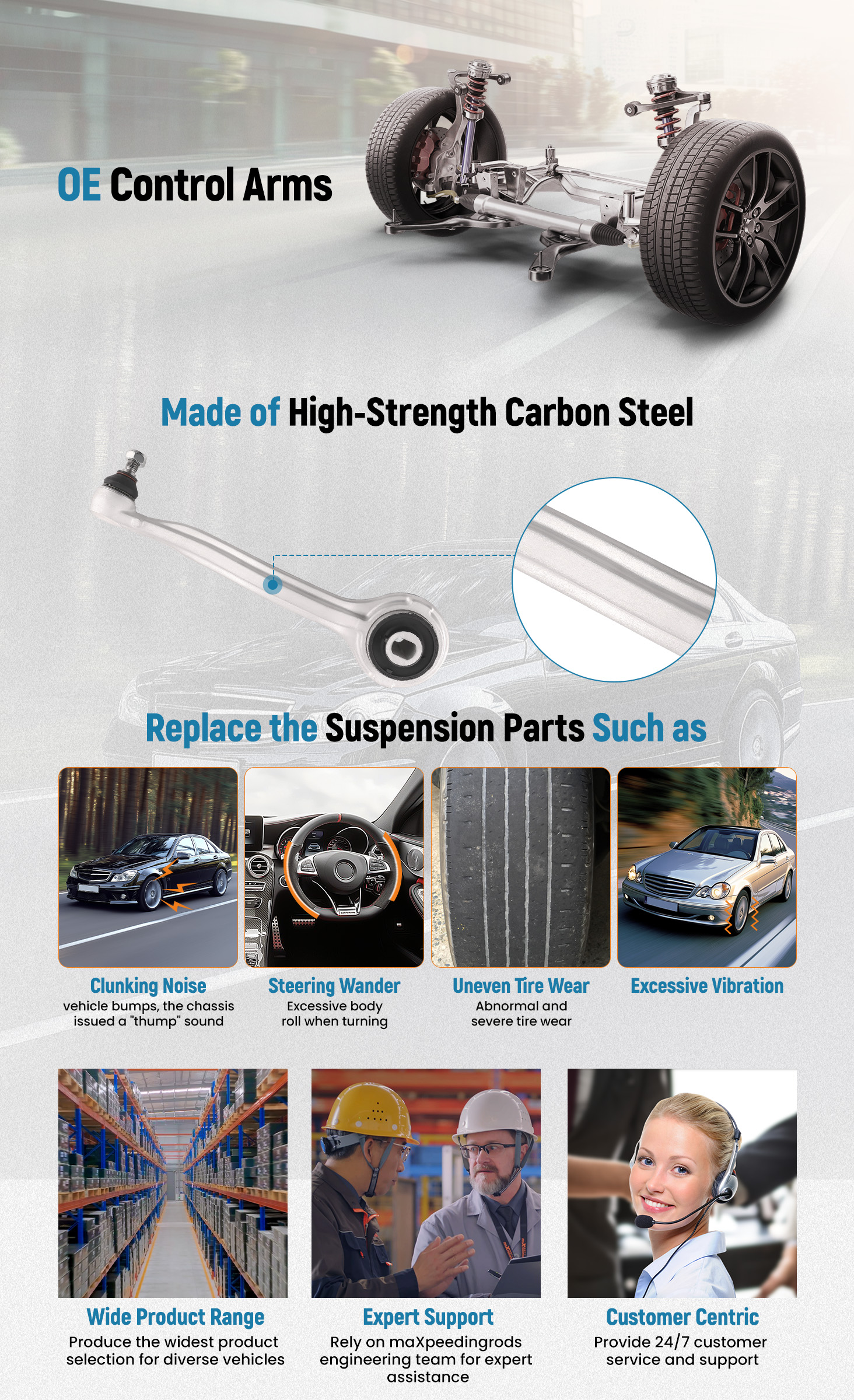 2 * bras de commande supérieurs avant (gauche et droite)