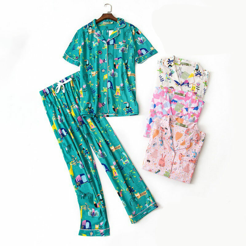 100% Gauze Cotton SLEEPWEAR: this two-piece womens pajamas set is made from Gauze Cotton woven printed fabric, Pajama set feel soft, comfortable, perfect for women with night wear,