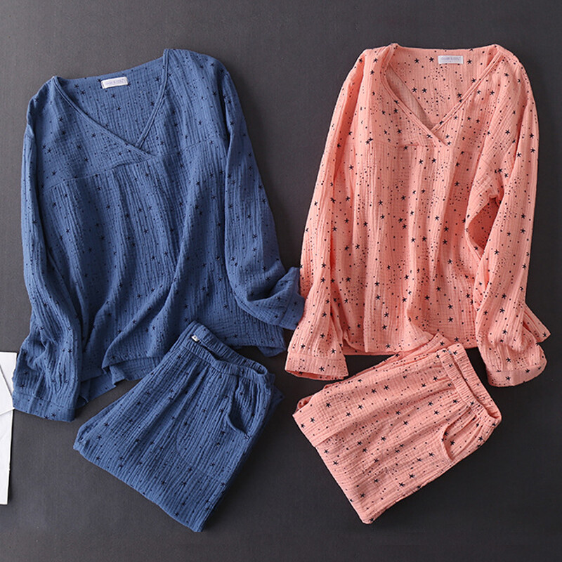 Women's Gauze Cotton Pajamas Set Sleepwear Pijamas Long-sleeved Trousers Pajamas