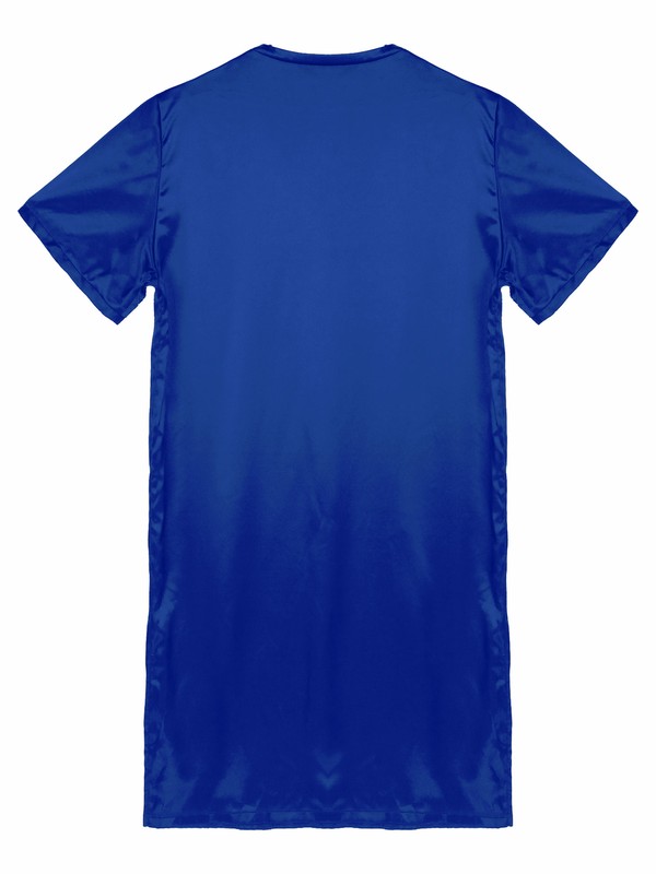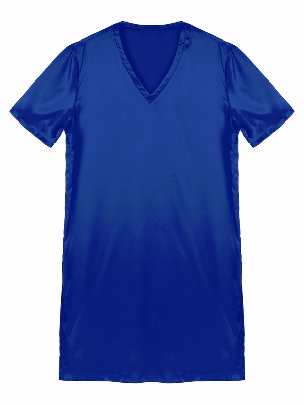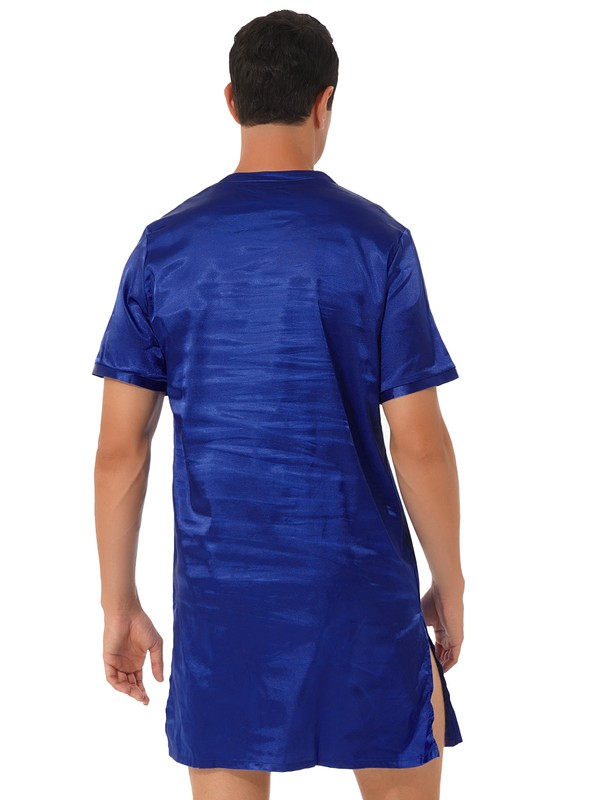 Men Women Satin Nightgown V Neck Short Sleeve Sleepwear Nightclothes Homewear Sides Split Nightwear.