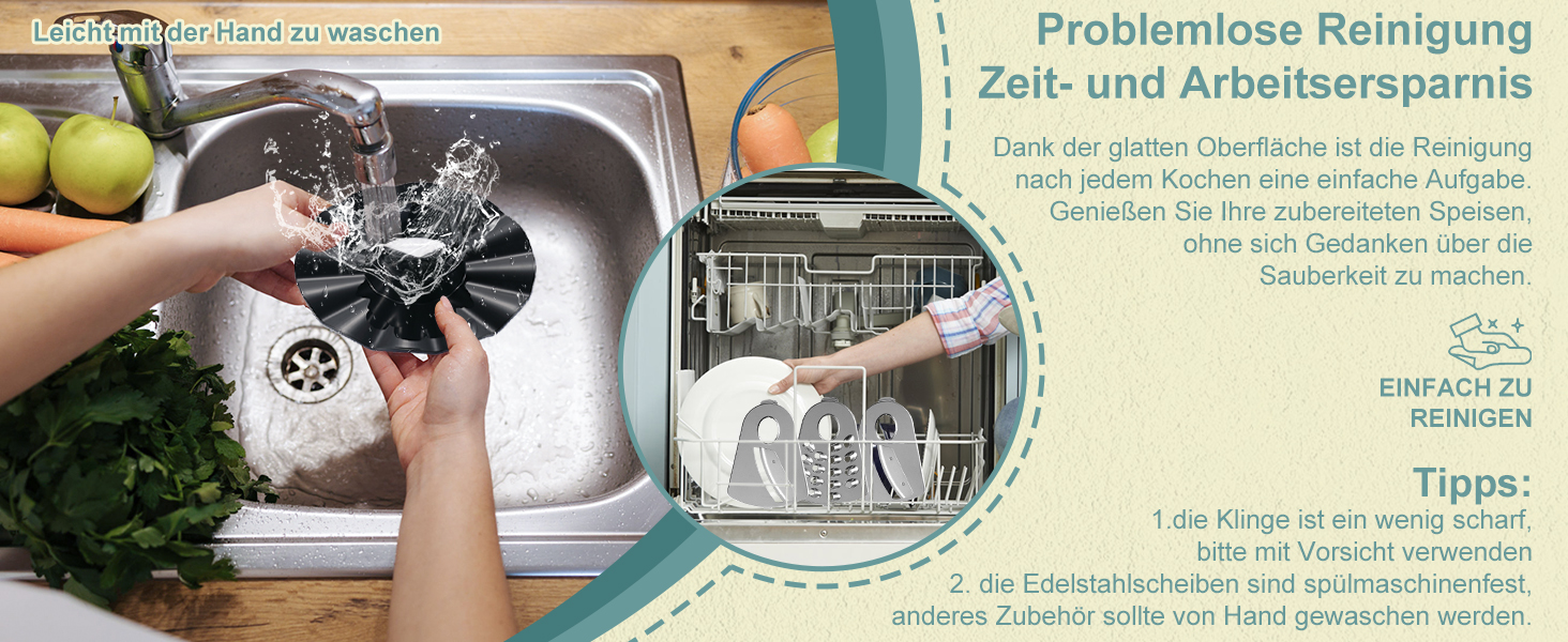 Leicht zu reinigenAlle abnehmbaren Teile sind aus BPA-freiem Material hergestellt. Leicht zu reinigen, Einige Zubehörteile sind für Geschirrspüler geeignet. |