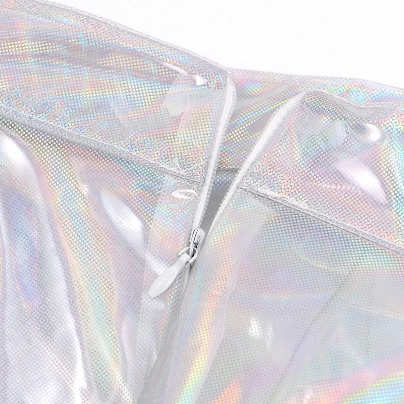 Women See-through Flared Skirt Clubwear Glossy Shiny High Waist Zipper Back Miniskirt.