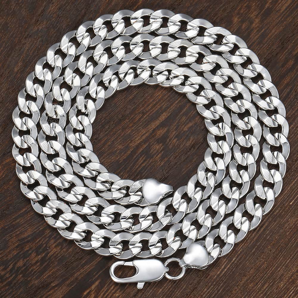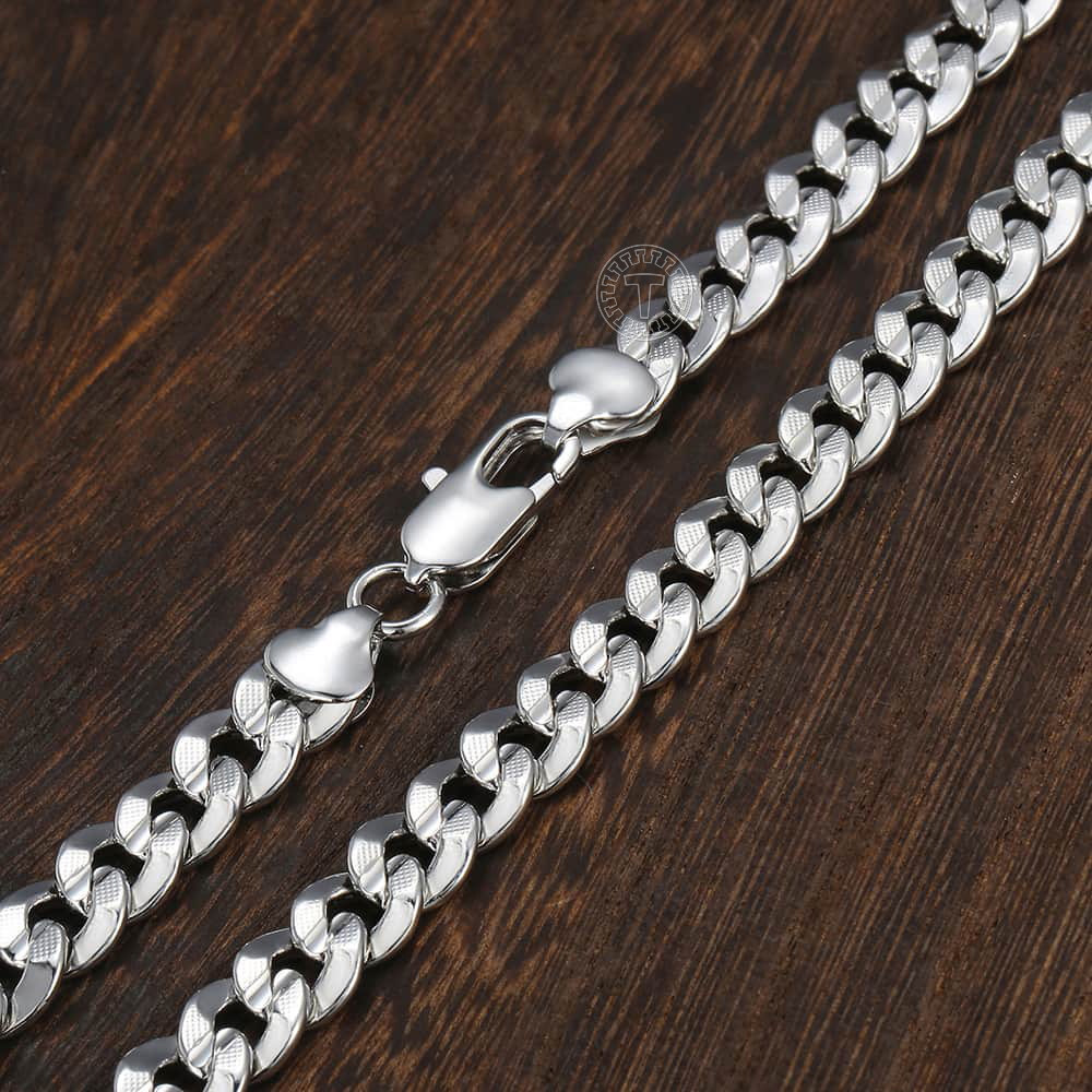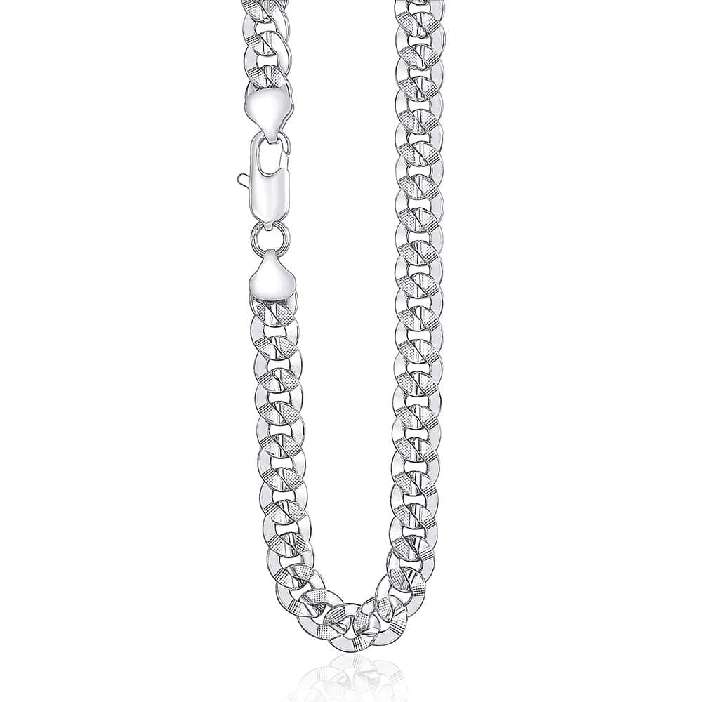 9mm White Gold Filled Hammered Curb Cuban Link Necklace Men's Chain 26"