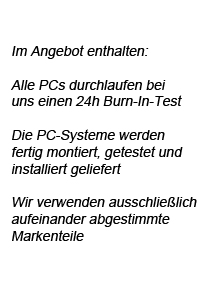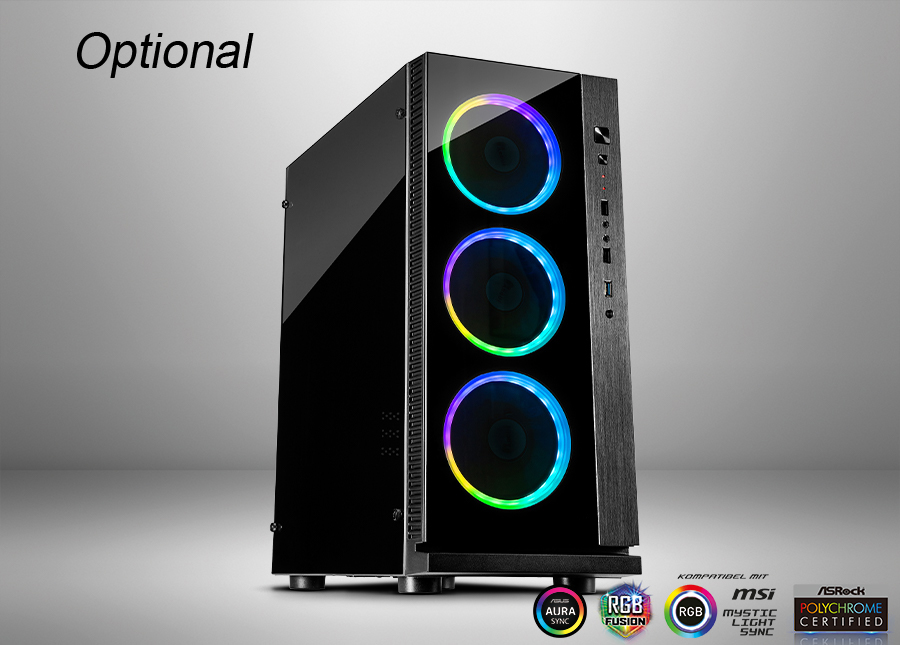 | | Gamer PC AMD Ryzen 7 5800X |  | CPU | AMD Ryzen 7 5800X (8x 3,8GHz -4,7GHz Turbo) 8 Kerne, 16 Threads | | Prozessor Lüfter | AMD boxed Cooler oder leiser Markenlüfter | | Mainboard | ASROCK A520M-HVS mit 1x PCI-Express (16x), 1x PCI-X (1fach), 1.000MBit LAN DSL Ready, 4x SATA 3, USB 3.2, Dualchannel DDR4 | | Sound | 5.1 Channel onboard High Definition (7.1 ready) | | Arbeitsspeicher | 16GB DDR 4 RAM 3200 Markenspeicher! | | Festplatte | ohne HDD | | DVD-Brenner | ohne DVD-Laufwerk | | Gehäuse | Schwarzes Design-Gehäuse (siehe Foto) mit Front USB + Audio (insgesamt 8 USB-Anschlüsse) | | Netzteil | 400W ATX Netzteil (jetzt mit neuer lärmreduzierter Revision) | | Grafikkarte | GeForce GT 710 HDMI, DVI, VGA, PCI-Express | | Zubehör | Stromanschlusskabel, Handbuch, Treiber CDs | | | | => weitere Details zum PC-System und Aufpreisoptionen finden Sie weiter unten | Spezifikationen und Details: |