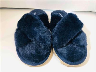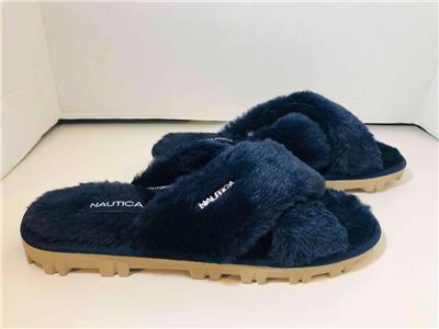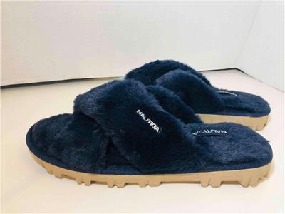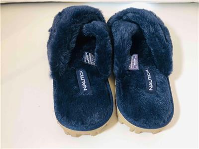 Hello, for your consideration is a pair of Nautica So Soft & Fuzzy Faux Fur Women's Slippers ~ Navy Blue in color ~ Thick Sole ~ Size 8