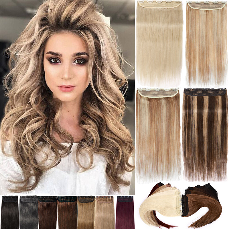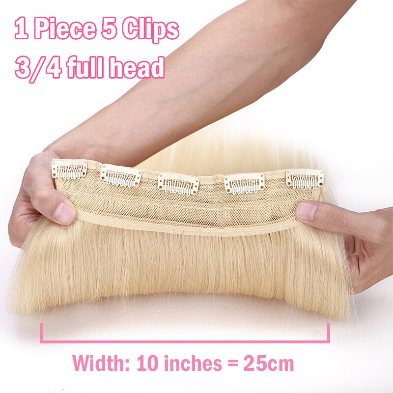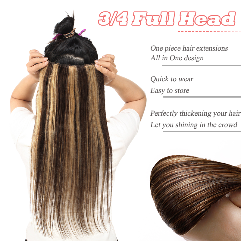 One Piece Clip In Russian Human Hair Extensions 8-24" Hairpiece 3/4 Full Head US