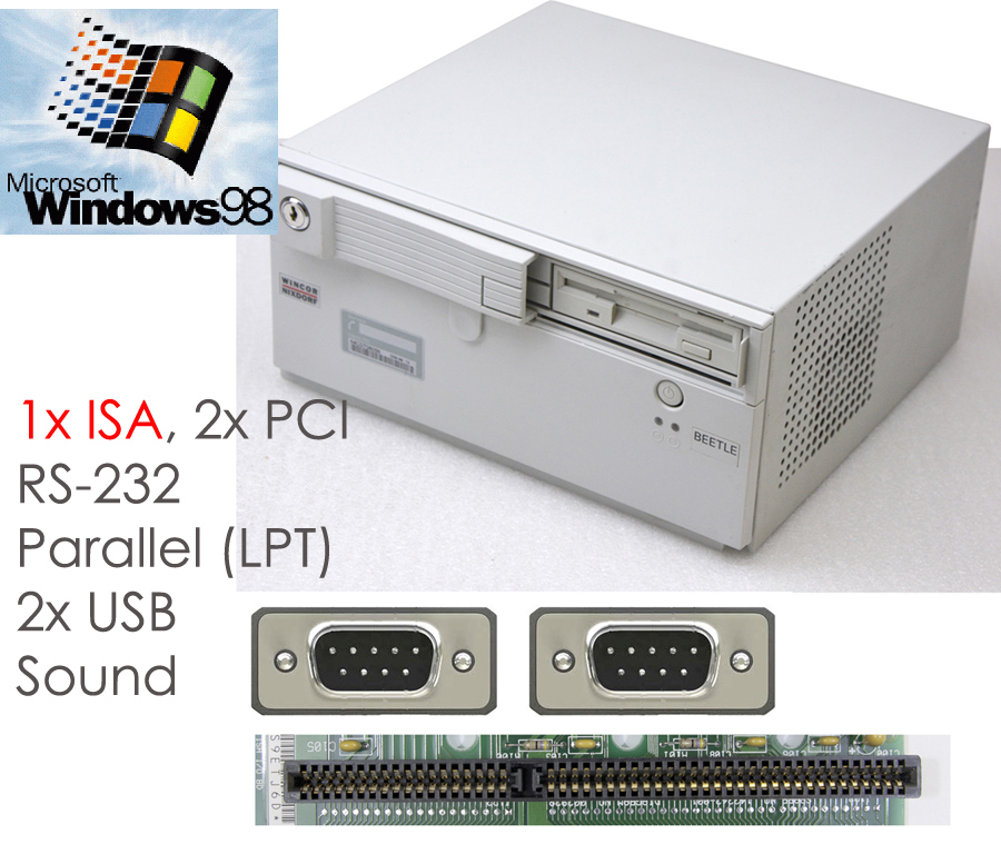 This computer is an ideal solution as a POS cash register, for Win95, Win98, for Ms-dos , for machine control; On the hard drive there is Windows 98 withAllen Driver that we could only find. Other versions of this computer (also incl. Operating system) you will find us Here (please click on it).