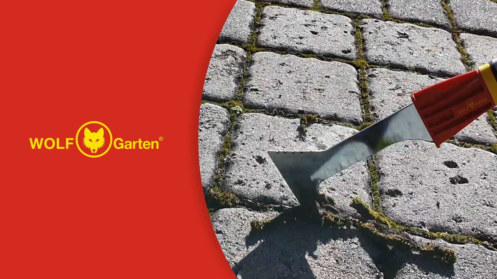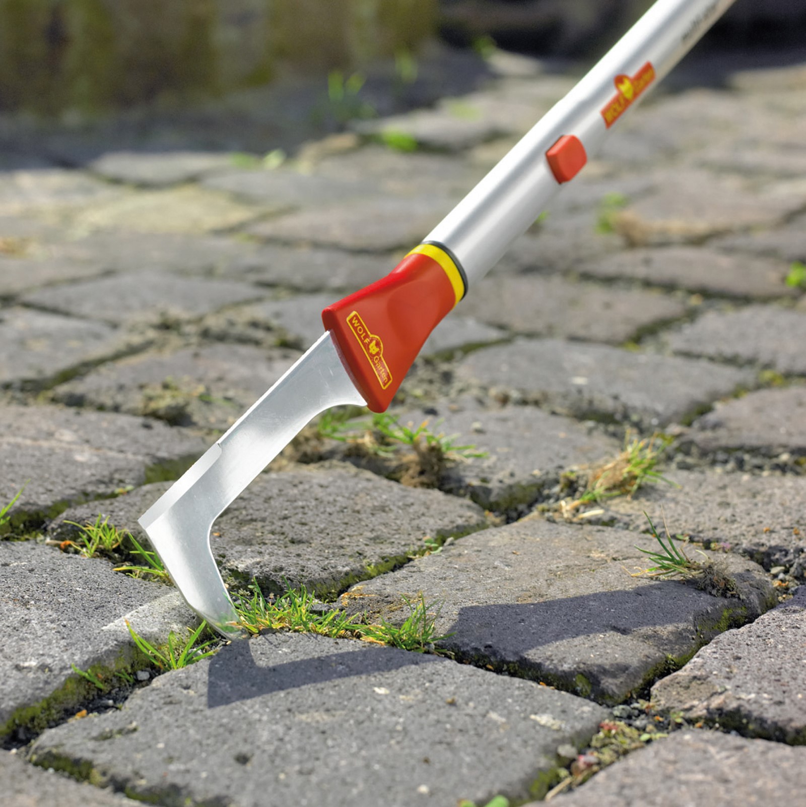 The Wolf Garten Garden Scraper removes weeds and moss from between paving.