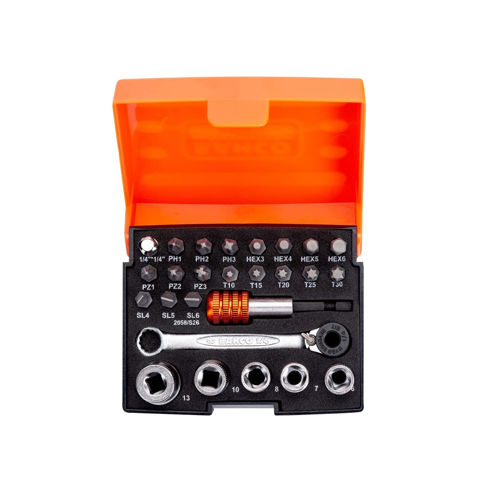 Bahco 2058/S26 26 Piece Ratchet Socket Bit Set 1/4in Drive PZ PH Hx Torx Slotted