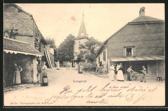 AK Longirod, Straßenpartie mit Blick zur Kirche