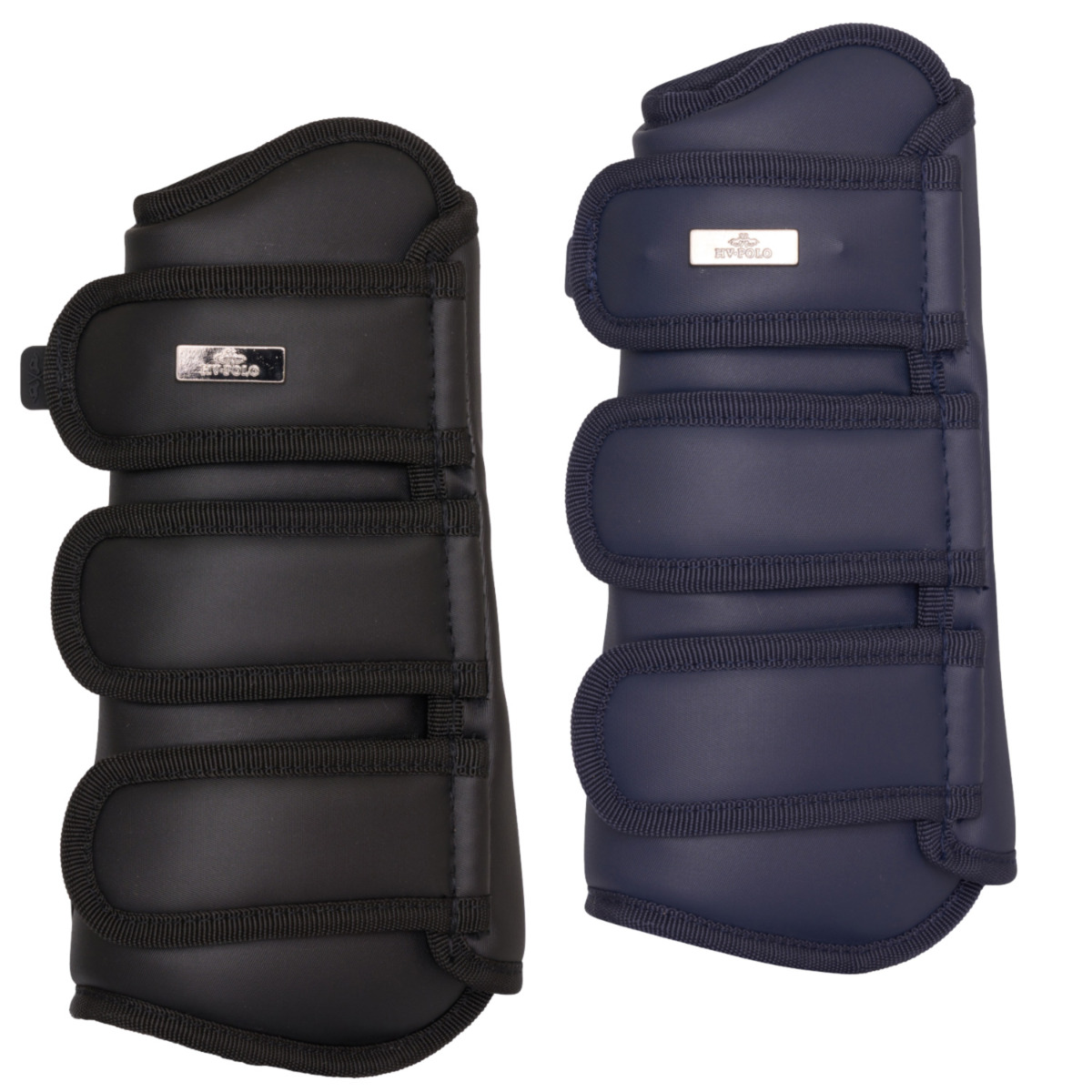 Dressurgamaschen aus PU-Material mit Futter aus Mesh-Material für Belüftung. Mit kleiner Metallplatte und Gummietikett am oberen Verschlussriemen.