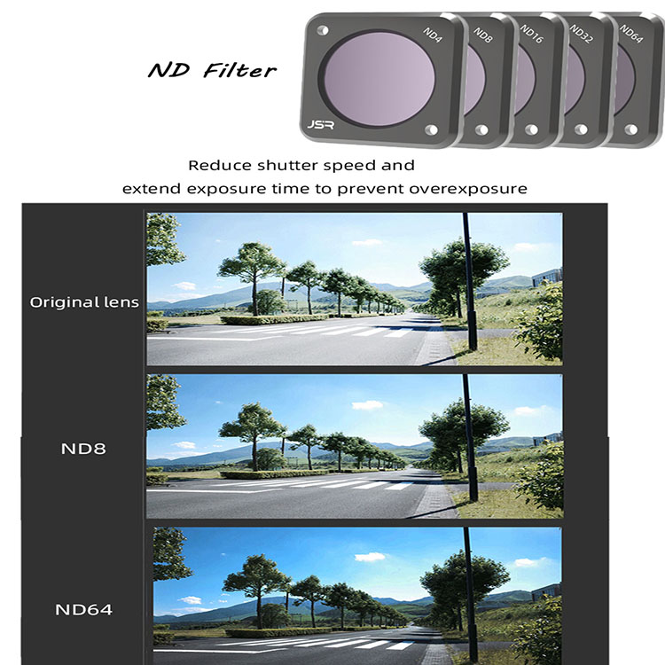 l ND Filters give you the free to create your own work by allowing you to have more control of the camera's aperture, exposure time and sensor sensitivity settings. It helps you reduce the amount of light coming into the sensor.
