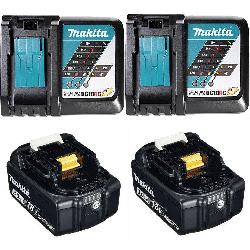 Makita BL1830 18v 2x LXT 3.0ah Lithium Batteries + DC18RC Dual Pack Fast Charger