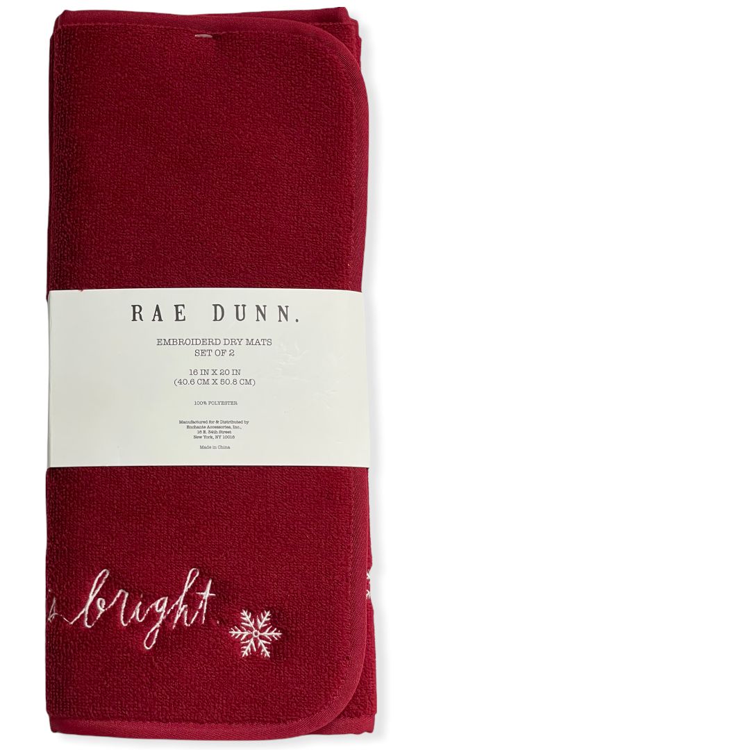 Rae Dunn Red MAKING SPIRITS BRIGHT Embroidered Dry Mats 16" x 20" - Set of 2