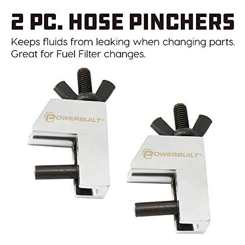 For temporarily sealing off vacuum lines, fuel lines another hoses with a positive, hands-off grip. Pincher tool uses wing nut to compress jaw and apply pressure between jaw and tool body. 1" opening. Two per package.