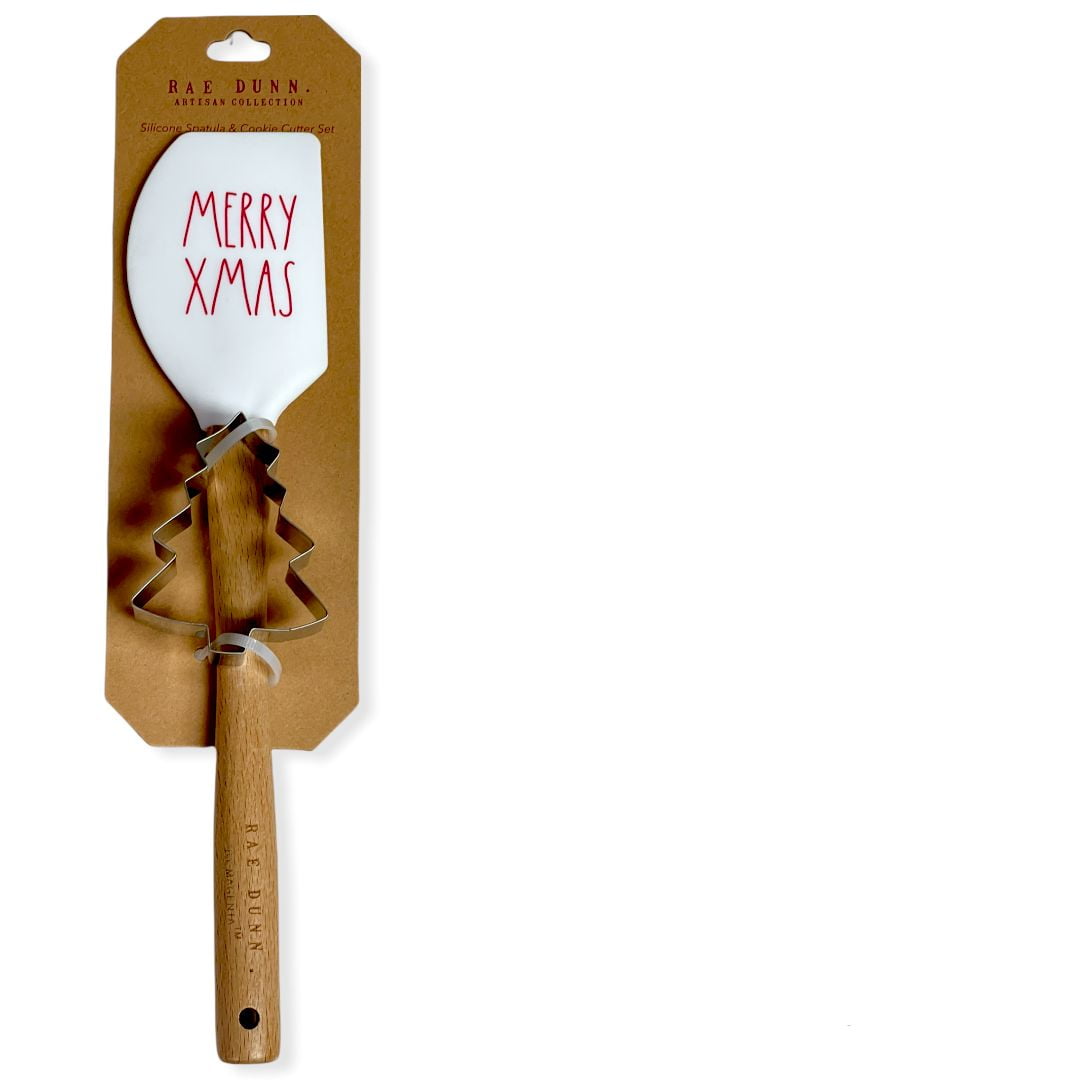 Rae Dunn White MERRY XMAS Spatula with Cookie Cutter Set
