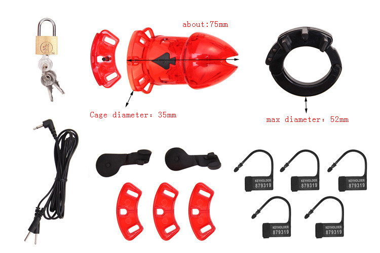 > 1 ElectroStim cage; the length of it is about 70mm,inner diameter of cage is about 40mm.> 1 leads(now all leads are white,not black or red)
