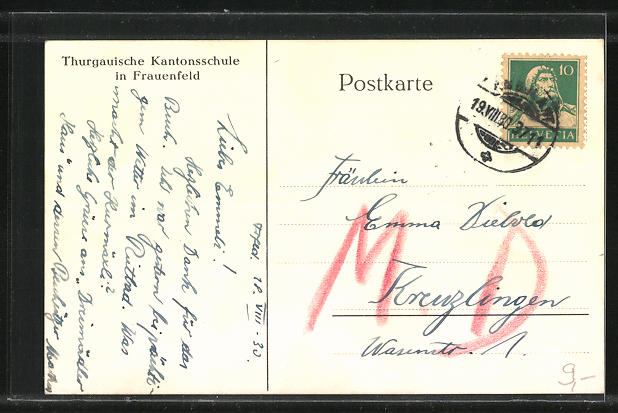AK Frauenfeld, Vorderseite der Thurgauischen Kantonsschule