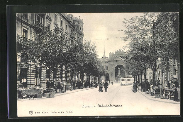 AK Zürich, Bahnhofstrasse mit Strassenbahn