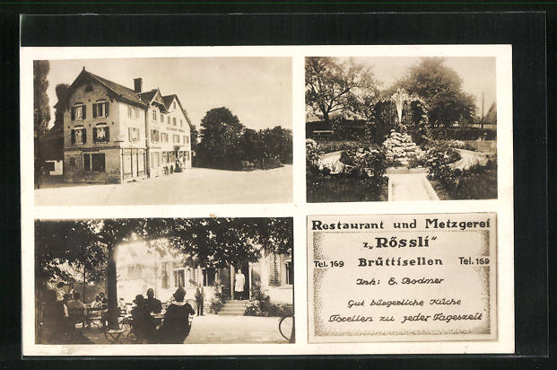 AK Brüttisellen, Restaurant und Metzgerei zum Rössli, Garten, Fontäne