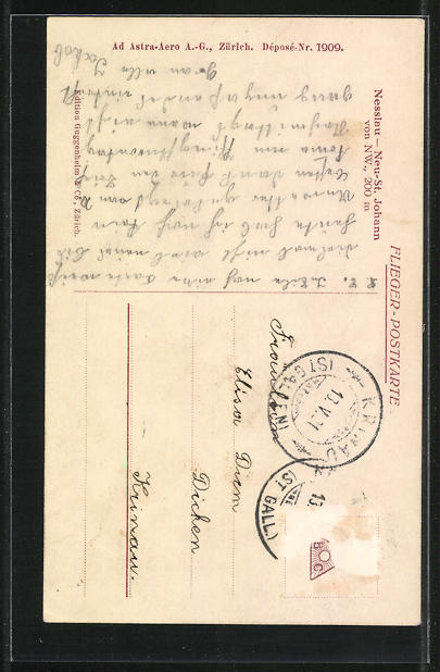 gelaufen 1921, Briefmarke entfernt, rückseitig Oberflächenschaden, sonst guter Zustand