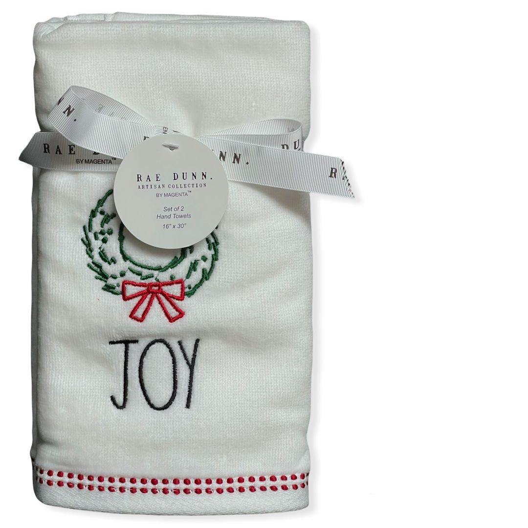 Rae Dunn Hand Towels White Set of 2 - JOY LL Black 16'x 30' Christmas Holiday