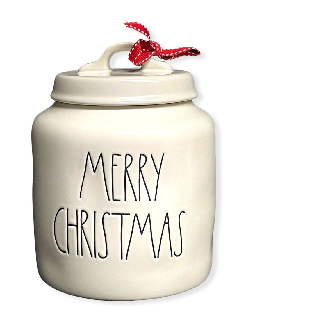 Rae Dunn By Magenta MERRY CHRISTMAS White Ceramic LL Canister With Black Letters