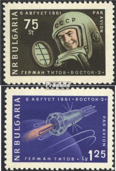 | Bulgaria 1279-1280 (complete issue) unmounted mint / never hinged 1961 Start soviet. RaumschiffWostok 2 Collectable: Stamps Area: Bulgaria Descripcion: Start of manned Soviet spaceship Vostok 2 Title: 1961 Start soviet. RaumschiffWostok 2 Catalog number - Michel: 1279-1280 (complete issue) Quality: unmounted mint / never hinged |
