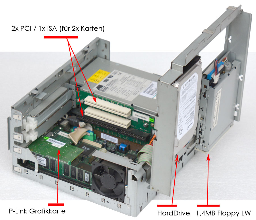 bis zu 17 cm lang), 2x PCI (für insges. 2 Karten), RS-232, LPT Parallelport,