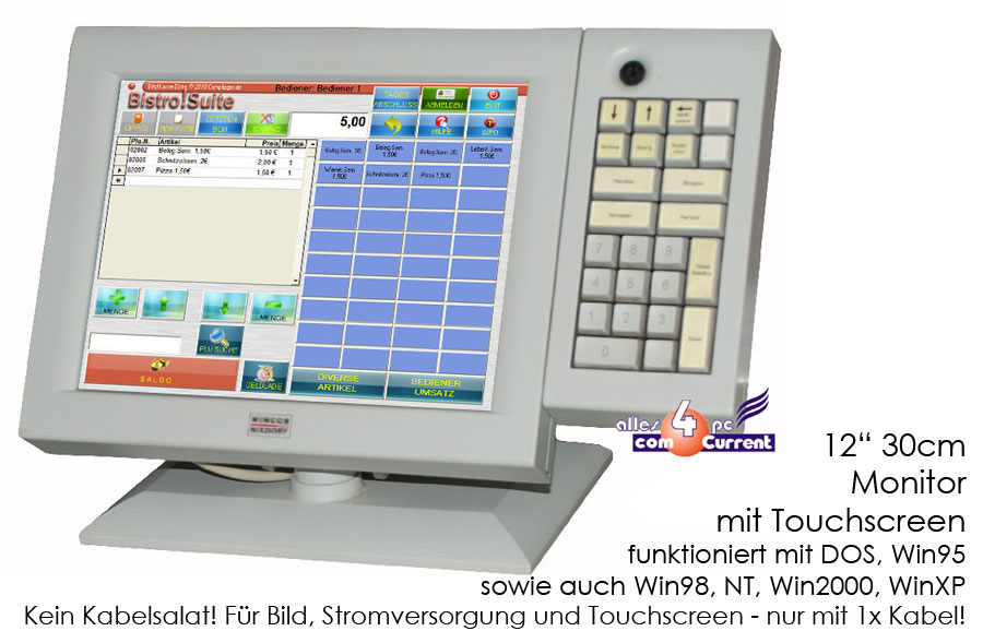 Monitor: Auflösung 800x600, hochwertige 3M Touchplatte, funktioniert auch unter